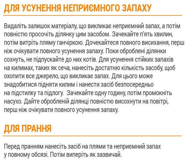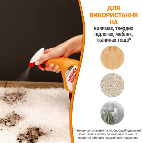 Для использования на коврах, твердых полах, мебели, тканях и т.д. Не используйте на необработанной древесине, коже, замше, шелке или шерсти, а также на пористых каменных и керамических поверхностях. Храните плотно закрытый контейнер в вертикальном положении в сухом, недоступном для детей и домашних животных месте.