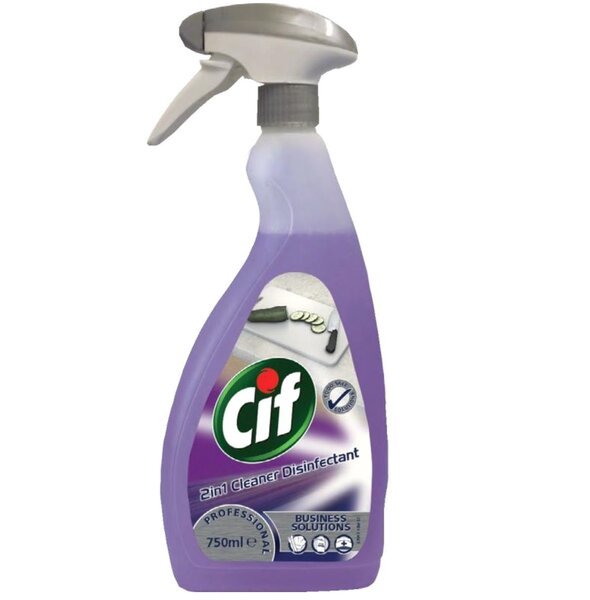 Высококонцентрированный препарат Cif 2in1 Cleaner Disinfectant, предназначенный для очистки и дезинфекции поверхностей. Обладает бактерицидным и фунгицидным свойствами против дрожжеподобных грибков. Рекомендован для очистки и дезинфекции поверхностей и устройств, имеющих непосредственный контакт с пищей. Эффективно удаляет различные жирные пятна и сухие остатки пищи.
