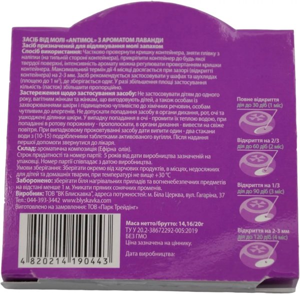 - Средство от моли Blyskavka Antiмоль с ароматом лаванды 1шт