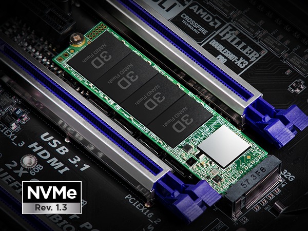Твердотельные накопители Transcend MTE110S/112S выполнены в форм-факторе M.2, оснащены интерфейсом PCIe Gen3 x4 и соответствуют всем требованиям стандарта NVMe 1.3, позволяющем использовать для одновременной передачи и приема данных четыре линии, что суммарно обеспечивает пропускную способность до 2 500 МБ/с при чтении и 1 700 МБ/с при записи.