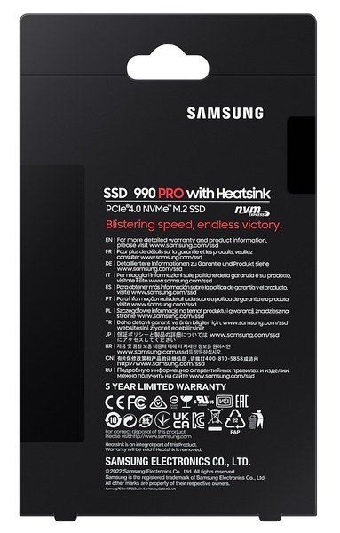 Огромный прирост скорости. 990 PRO с радиатором обеспечивает скорость последовательного чтения/записи до 7 450/6 900 МБ/с, приближаясь к максимальной производительности PCIe 4.0. Скорость произвольного чтения/записи на 40% и 55% выше, чем у 980 PRO 2 ТБ - до 1 400K/1 550K IOPS, а у 4 ТБ скорость произвольного чтения еще выше - до 1 600K IOPS.