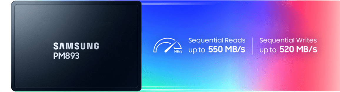 PM893 имеет 2,5-дюймовый форм-фактор и интерфейс SATA 6 Гбит/с с емкостью до 480 ГБ. Он соответствует требованиям серверных систем хранения данных и обеспечивает дополнительную надежность для критически важных данных благодаря комплексной защите данных.
