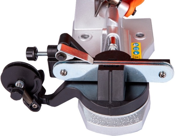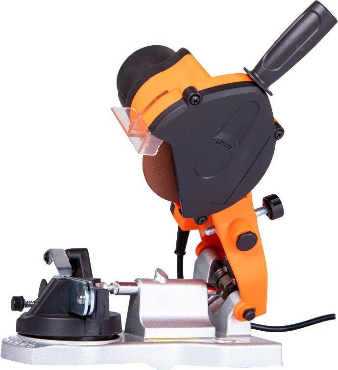 Станок для заточки цепей пил электрический — специализированное настольное устройство для быстрой заточки абразивным диском стальных пильных цепей практически всех типоразмеров ручных бензиновых и электрических пил по дереву. Изделие рассчитано на использование абразивных дисков внешним диаметром 104 мм, посадочным отверстием 22,2 мм и толщиной диска 3,2 мм. Прочная металлическая основа обеспечивает устойчивость конструкции. Для удобства эксплуатации модель оснащена функцией подсветки рабочей зоны.