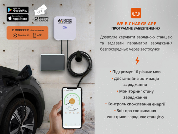 Оснащена зарядным штекером Type 2 (в соответствии с DIN IEC 62196-2), который подходит для большинства моделей электромобилей. Благодаря зарядному кабелю длиной 5 м вы сможете использовать различные варианты для парковки.