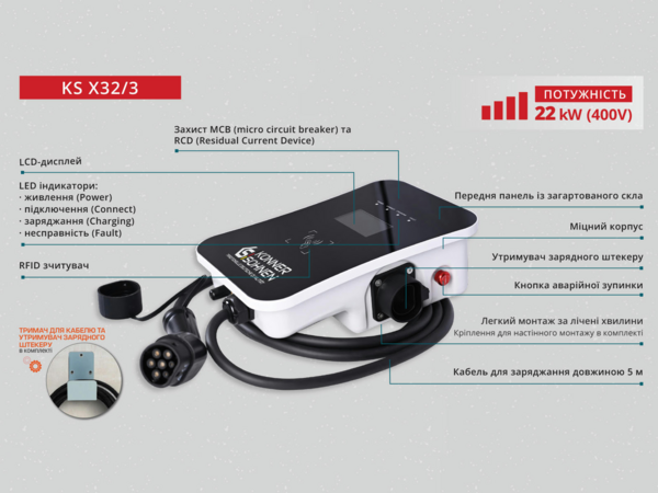 Описание Станция зарядки электромобилей Konner&Sohnen KS X32/3, 400В (KSX32/3)