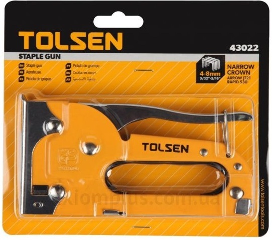 Степлер Tolsen, 4-8мм, тип скоб J, держатель металлический, регулировка забивания скобы (43022)
