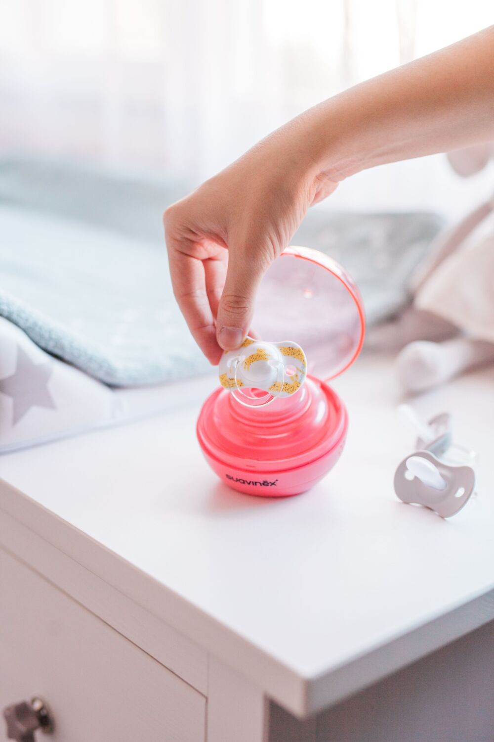 Стерилизатор для пустышек Suavinex уничтожает микробы на пустышках благодаря ультрафиолетовому свету, за 3 минуты.