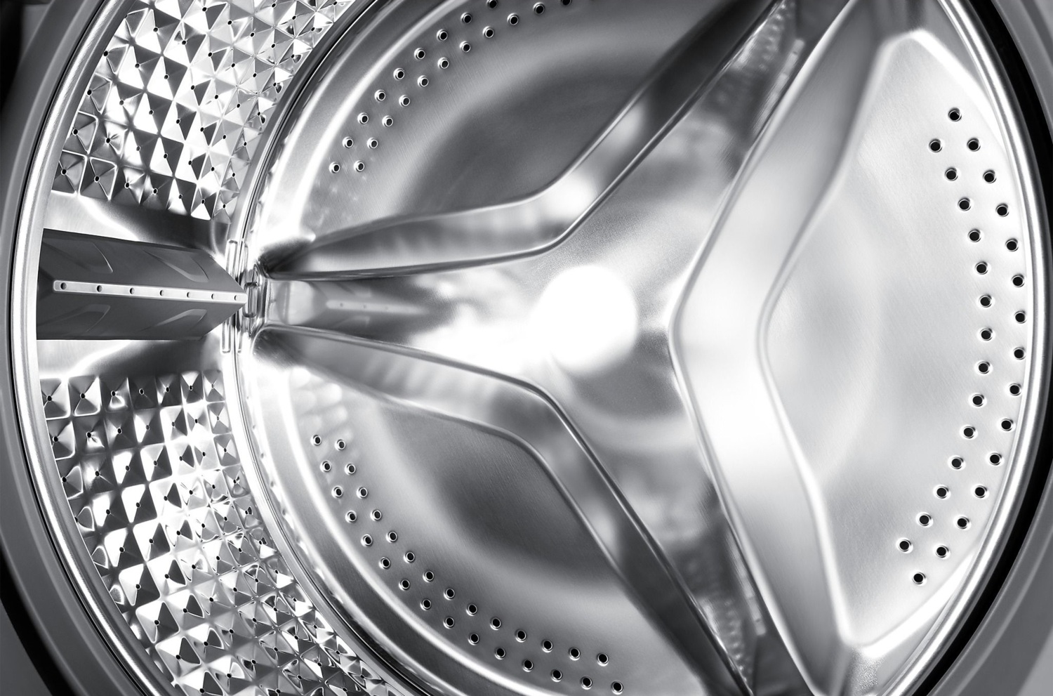 Поддерживайте гигиеническую чистоту внутренней поверхности барабана своей стиральной машины без использования химических веществ. Функция очистки барабана обеспечивает удаление без использования моющего средства 99,9% бактерий, вызывающих появление запаха, благодаря комбинации замачивания, полоскания и высокоскоростного вращения. А еще машина автоматически сообщит вам, когда необходимо провести очистку.