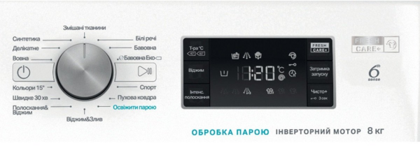 FreshCare+ сохраняет вашу одежду свежей до 6 часов после окончания цикла. После завершения стирки, функция FreshCare+ сохраняет запах одежды и предотвращает распространение запахов внутри стиральной машины. Благодаря сочетанию горячего пара и периодических бережных движений барабана, белье проветривается и остается свежим, даже после стирки.