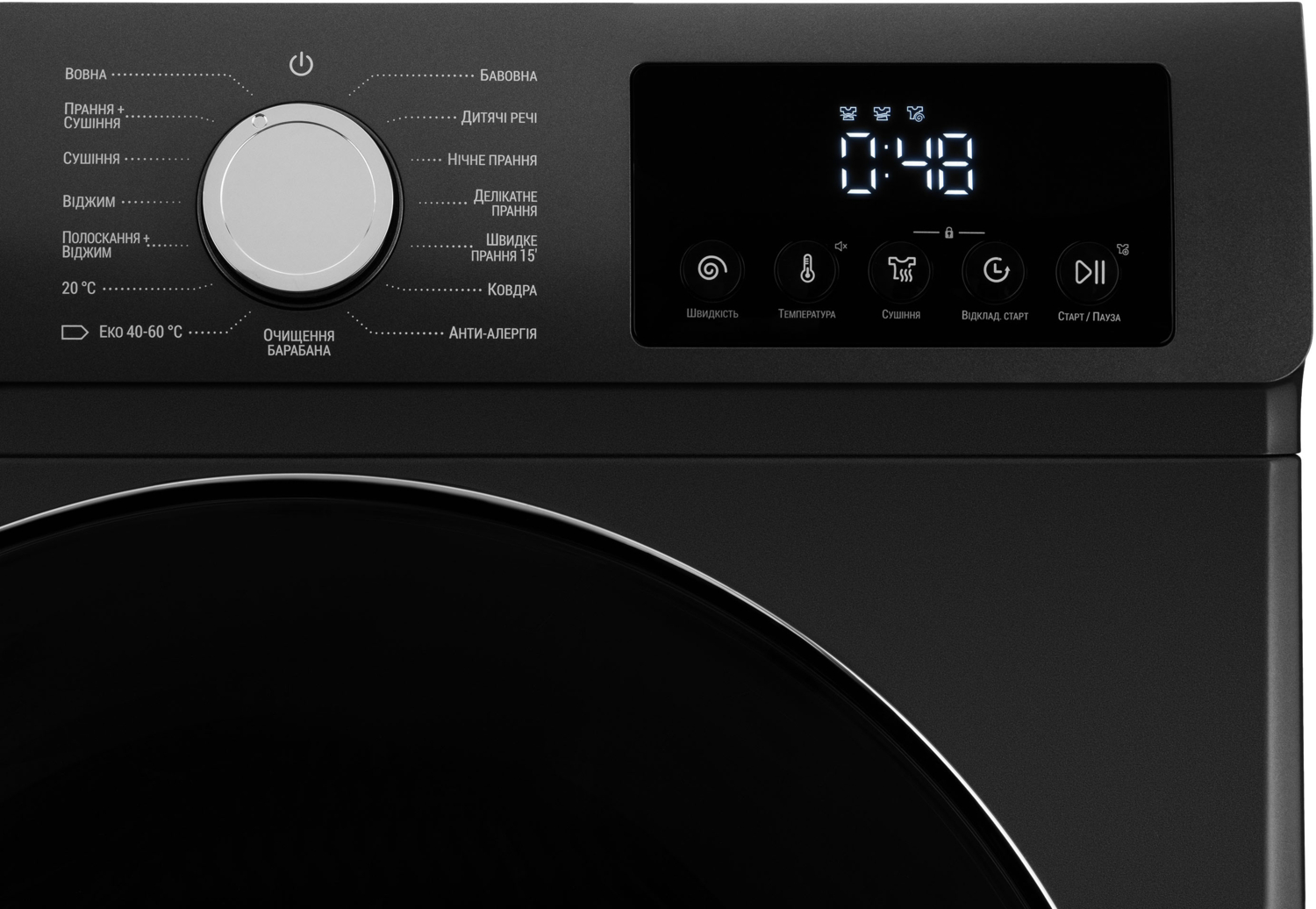 | Дополнительные опции | Выбор скорости отжима, Выбор температуры стирки, Отложенный старт, Очистка барабана, Старт/Пауза |