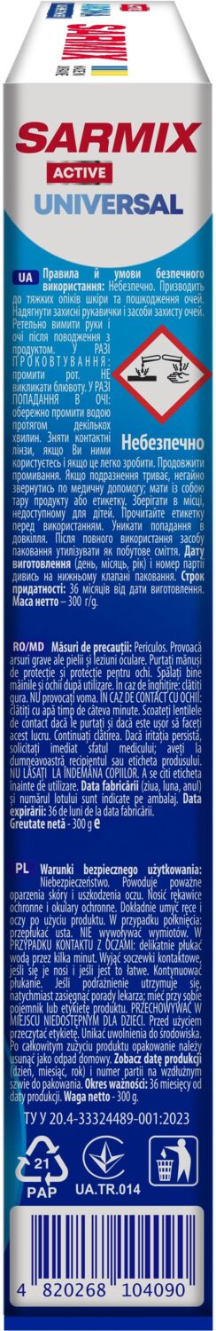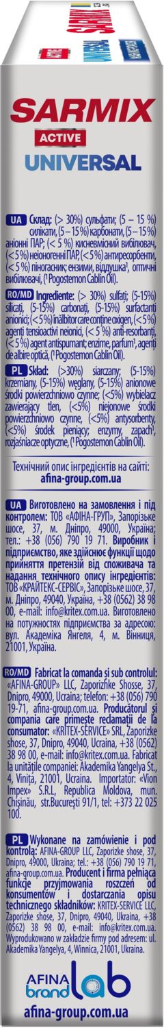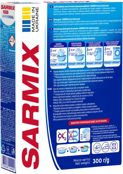 - Стиральный порошок Sarmix Active Universal для всех типов стирки 300 г