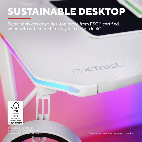 Стол игровой Trust GXT 709W Luminus RGB White (25328_TRUST)
