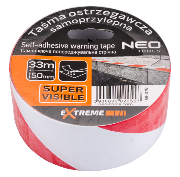 - Лента предупредительная клейкая Neo Tools, 50мх33мм, красно-белый (56-078)
