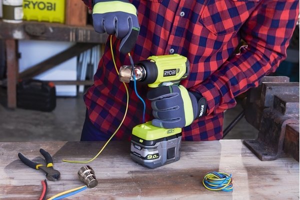 Технический фен Ryobi ONE+ R18HG-0 5133004423 отлично подходит для тонировки, термоусадки и пайки медных труб. Может использоваться в автосервисах и автомастерских. Источником питания является литий-ионный аккумулятор напряжением 18 В.