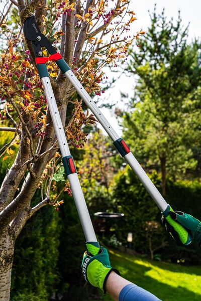 Чтобы инструментом мог пользоваться я и жена, покупал сучкорез представленный фирмой верто, так как у него удобные, эргономичные рукоятки с не скользящими накладками, удобный хват и широкий рез. Используем сучкорез 15g253 для тонких и толстых веток с диаметром до 3.5мм. Лезвие длинное - 96 мм, для защиты от повреждений и коррозии оно выполнено с тефлоновым покрытием, так что можно не боясь резать влажные ветки, кусты роз, обрезать виноград. Выделяется сучкорез на фоне остальных тем, что его рабочую длину можно менять - от 70 см до 1 м благодаря телескопическим ручкам. Купленный здесь инструмент меня радует не первый раз, сучкорез не исключение
