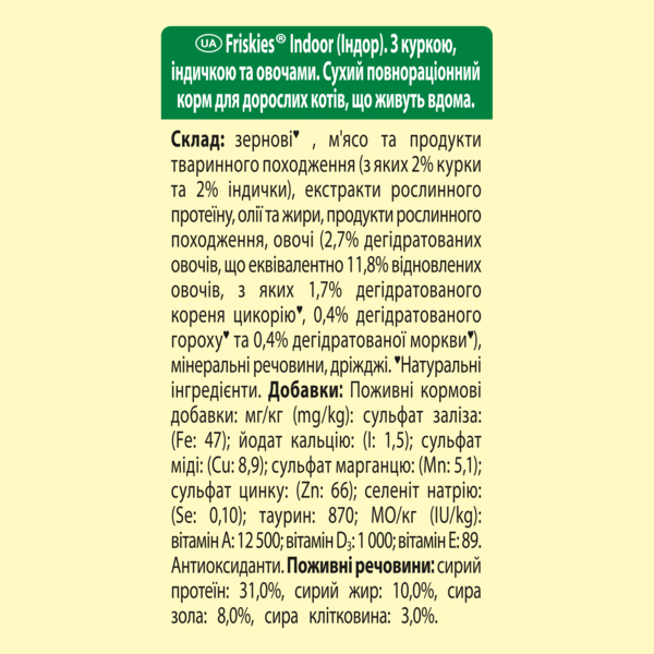 - Сухой корм для котов Friskies Indoor с курицей и садовой травой 270 г
