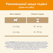 Корм для кошек Cat Chow необходимо включать в рацион животного постепенно в течение 7 дней. Средняя суточная норма рассчитана для умеренно активных кошек при нормальной температуре окружающей среды. Суточная норма может варьироваться в зависимости от индивидуальных потребностей кота и должна быть адаптирована таким образом, чтобы сохранить его стройное телосложение. Свежая чистая питьевая вода должна быть доступна животному в любое время.