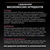 | Аналитические компоненты | Сырой протеин: 40%, сырой жир: 18%, сырая зола: 7,5%, сырая клетчатка: 1,5%, аргинин: 2,3%, омега-3 жирные кислоты: 0,5% |