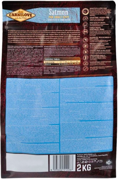 Чтобы сохранить отличную форму, взрослым кошкам необходима качественная белковая пища со сбалансированным уровнем незаменимых аминокислот. Корм Carnilove Salmon для взрослых кошек создан с учетом естественного рациона кошек в дикой природе. Мясо и жир лосося – идеальные источники ненасыщенных жирных кислот омега-3, обладающих противовоспалительными свойствами и оказывающих положительное воздействие на состояние шерсти и кожи.