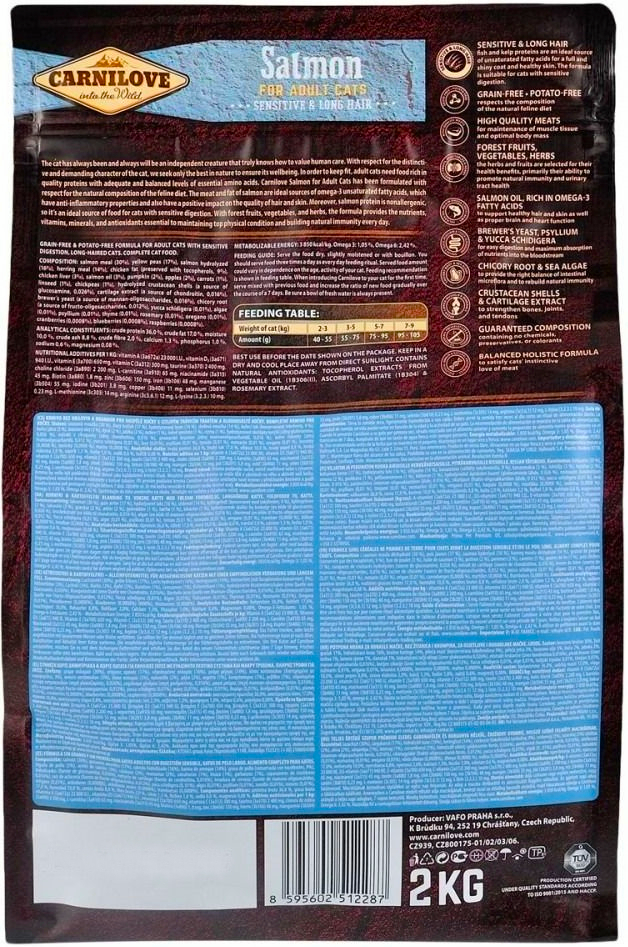 - Сухой корм для котов Carnilove Cat Sensitive & Long Hair с чувствительным пищеварением лосось 2 кг