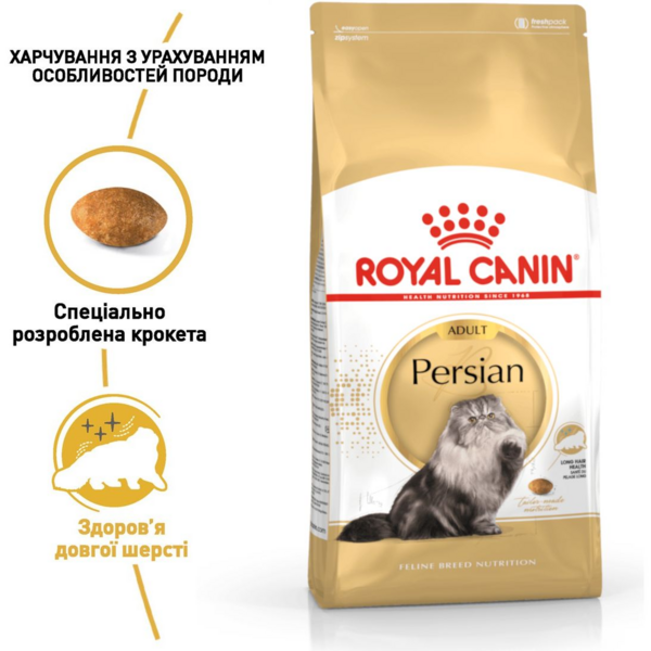 Royal Canin Persian Adult - полнорационный сухой корм для взрослых кошек персидской породы в возрасте от 12 месяцев.