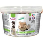 Lolopets полнорационная смесь с гранулами, экструдатами, фруктами и лекарственными травами, содержащими натуральные витамины и минеральные вещества. Благодаря этому шиншилла благополучно развивается и получает все важные витамины, минералы и микроэлементы. Продукты, которые находятся в составе корма наполняют организм животного йодом, кальцием, бета-каротином и многими другими не менее важными элементами.