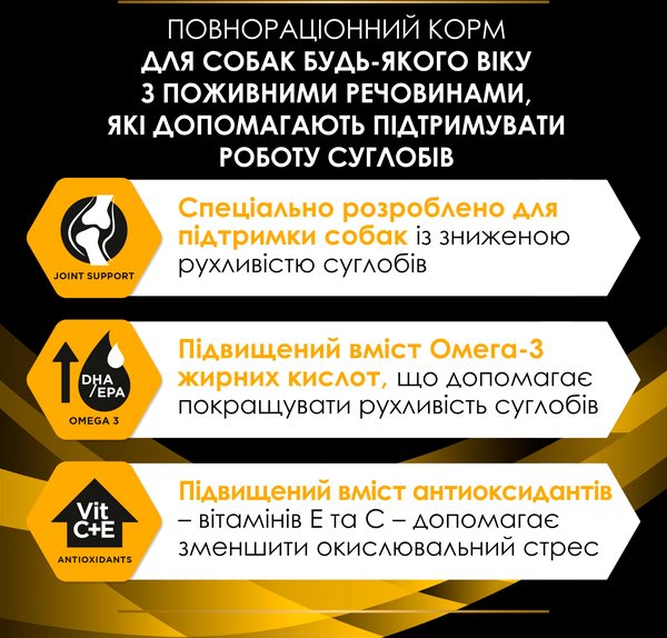 Сухой полнорационный корм для собак любого возраста с питательными веществами, помогающими поддерживать работу суставов.