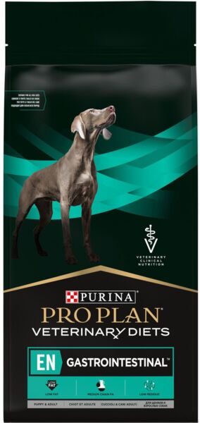 Pro Plan Veterinary Diets EN Gastrointestinal (Про План Ветеринарная Диета ЕН Гастроинтестинал) – это сухой полнорационный диетический корм для щенков и взрослых собак для устранения расстройств пищеварения и при экзокринной недостаточности поджелудочной железы. Содержит легкоусвояемые ингредиенты, обеспечивающие высокую абсорбцию питательных веществ и минимизирующие нагрузку на желудочно-кишечный тракт животного.