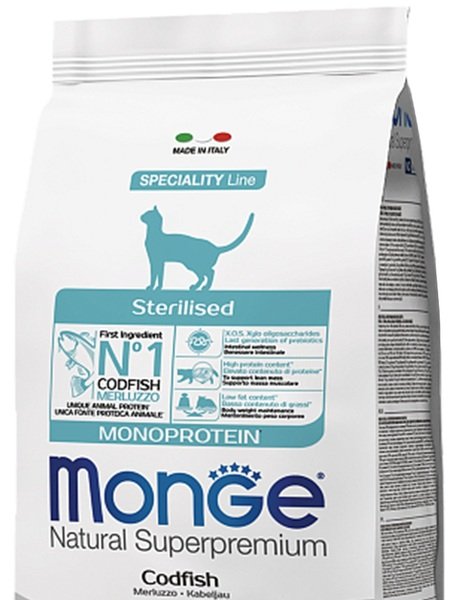 - Сухой корм для стерилизованных кошек Monge Cat Sterilized с треской 1.5 кг