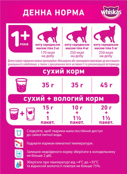 Корм Whiskas – это вкусное блюдо, приготовленное с учетом особенностей организма вашего любимца. Вкусные подушечки с нежным паштетом из курицы. Корм представлен в современной герметичной упаковке, благодаря которой он отлично сохраняет свои качества на протяжении длительного периода времени.