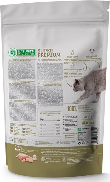 Характеристики Сухой корм для стерилизованных котов Nature's Protection Sterilised 400г