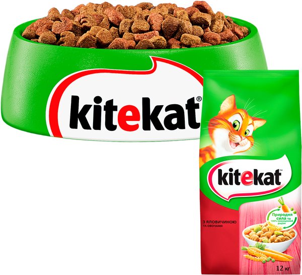 - Сухой корм для взрослых кошек KiteKat с говядиной и овощами 12кг