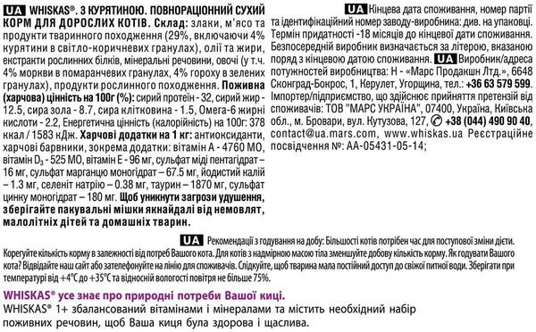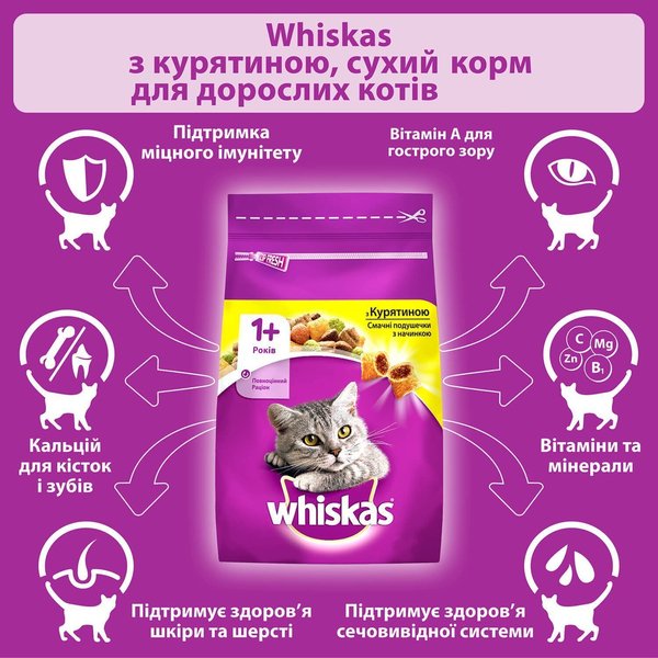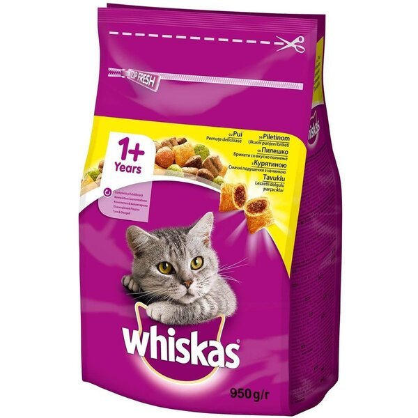 - Сухой корм для взрослых кошек Whiskas с курицей 950 г