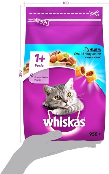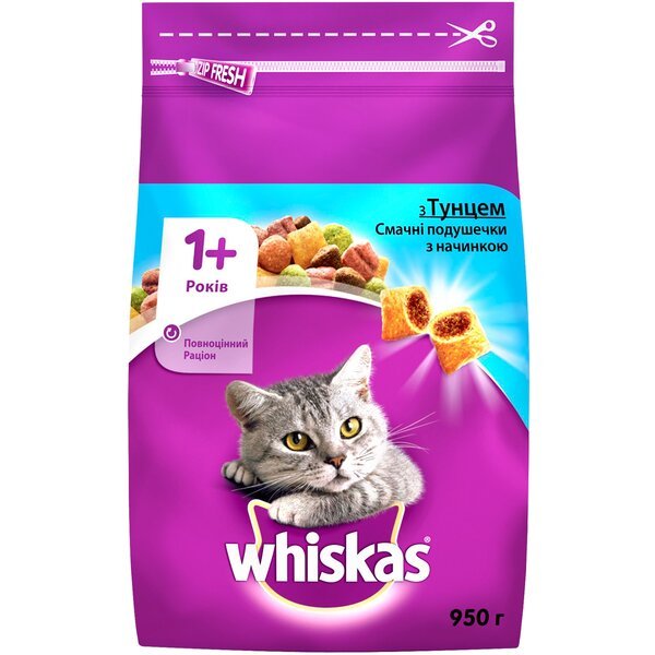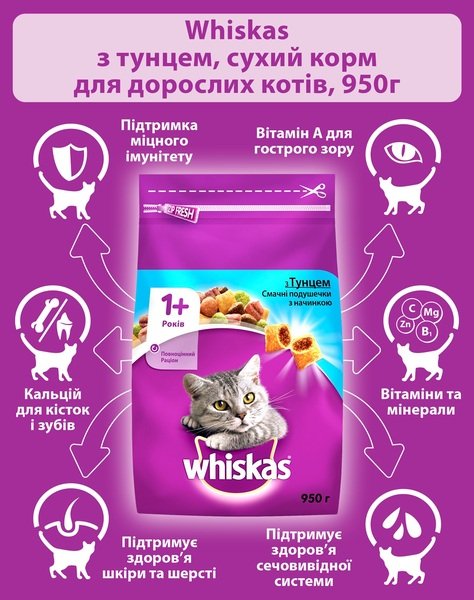 - Сухой корм для взрослых кошек Whiskas с тунцом 950 г