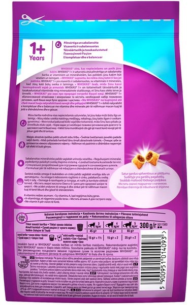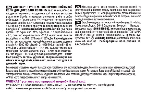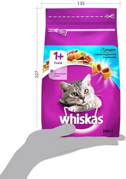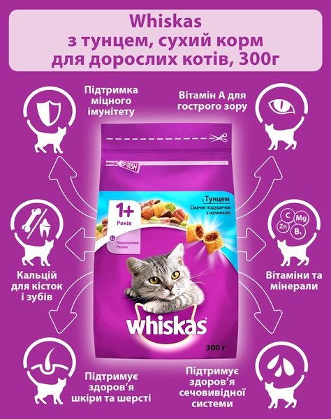 - Сухой корм для взрослых кошек Whiskasas с тунцом 300г