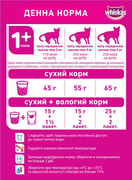 Корм Whiskas для взрослых котов с тунцом – это аппетитное рыбное наслаждение, чрезвычайно вкусное для вашего взрослого домашнего питомца