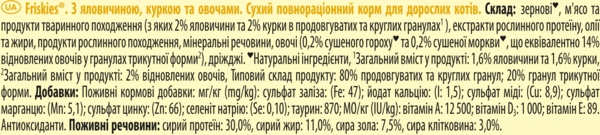 - Сухой корм для взрослых котов Purina Friskiesс говядиной, курицей и овощами 10 кг