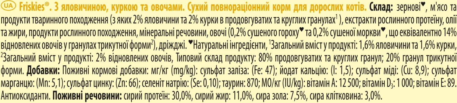Полнорационное питание для вашего любимца на каждый день. Этот корм обеспечивает вашего котика необходимыми веществами и замечательным вкусом, который он так любит, чтобы помогать ему оставаться здоровым и счастливым. Friskies - это корм для кошек, созданный специалистами по питанию животных Purina.