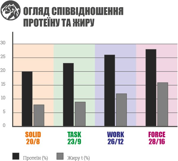 | Состав | Злаки, мясо и субпродукты животного происхождения, субпродукты растительного происхождения, масло и жиры, минералы |