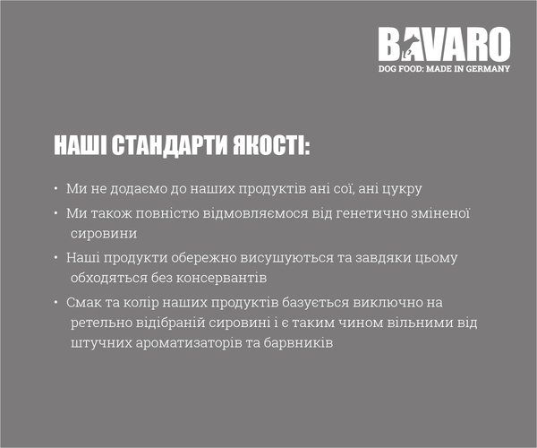 Корм Bavaro специально разработан для рабочих собак. Поэтому он идеально подходит для охотничьих, спасательных, охранных и спортивных собак. Корм не содержит сою и сахар, генетически измененное сырье, консерванты, а также искусственные ароматизаторы и красители. Bavaro Solid 20/8 – это оптимальный базовый корм для всех видов рабочих собак. Подходит для собак с нормальной активностью, а также для тех, которые уже находятся на заслуженном отдыхе.