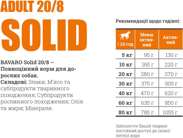 - Сухой корм для взрослых рабочих собак Bavaro Solid 20/8 18 кг