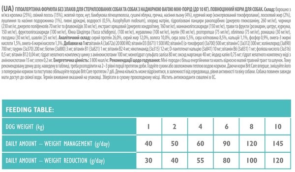 - Сухой корм для взрослых собак миниатюрных пород с избыточным весом или стерилизованных Brit Care Mini Light & Sterilised