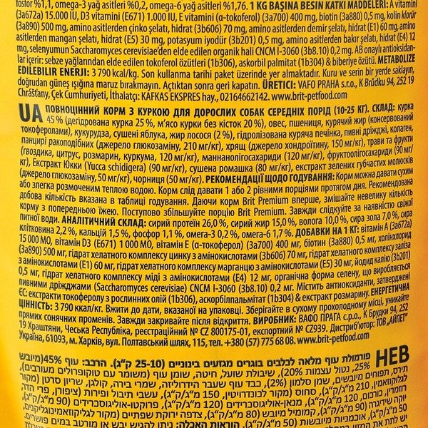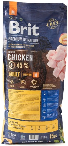 Brit Premium by Nature Adult М - совершенная куриная формула для взрослых собак средних пород (10-25 кг).