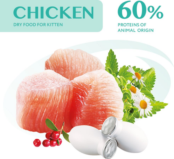 - Свежее мясо курицы в виде фарша обеспечивает котенка высококачественным легкоусвояемым протеином животного происхождения, способствует здоровому пищеварению.