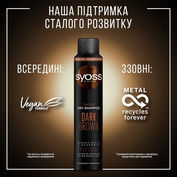 Сухой шампунь Syoss Dark Brown с тонирующим эффектом 200 мл