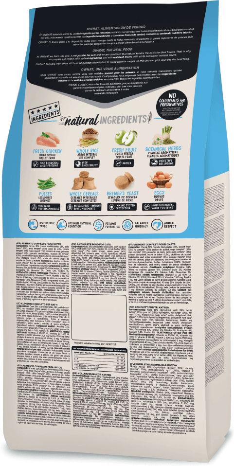 Сухой корм Ownat Classic Kitten, с курицей – это полнорационное питание, содержащее высокий уровень калорий и белков для удовлетворения особых потребностей роста и правильного развития котенка. Особое внимание уделяется здоровому пищеварению за счет наличия белков, содержащихся в свежем мясе, и фруктоолигосахаридов, способствующих балансу микрофлоры кишечника.