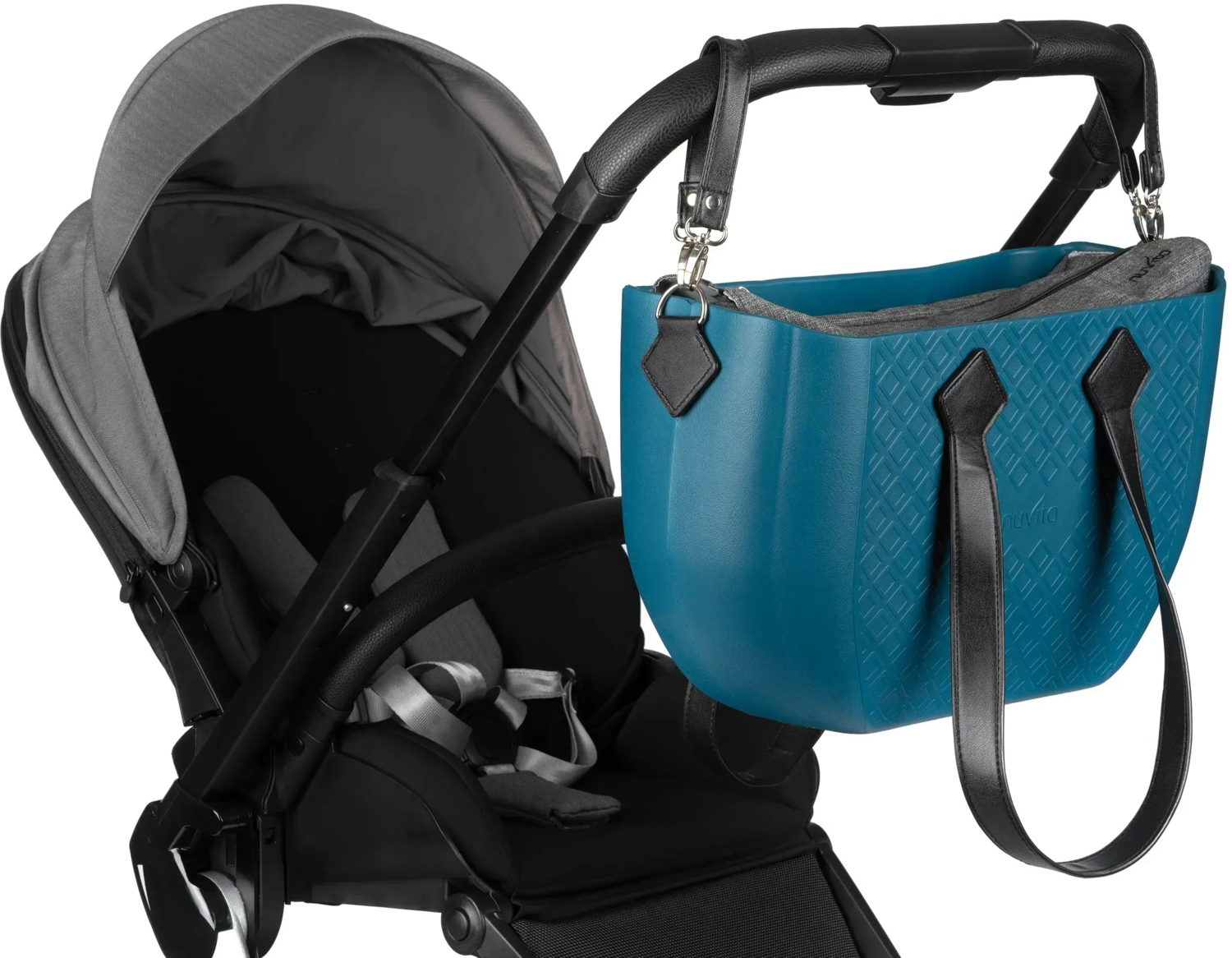 - Сумка MyMia синий корпус/ серая подкладка/ набор (ручки, фиксаторы, ремни на коляску) эко-кожа