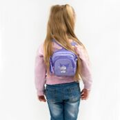 Сумка имеет вместительное основное отделение для важных вещей. Передний карман предназначен для мелочей, которые должны быть под рукой. Съемный регулируемый ремешок позволяет подстроить сумку под рост ребенка и носить ее комфортно через плечо или на пояснице. Универсальный формат — можно перестегнуть лямку и носить сумочку как рюкзак. Поле для персональных данных — отличная идея для родителей, чтобы в случае необходимости было легко найти контактные данные малыша.
