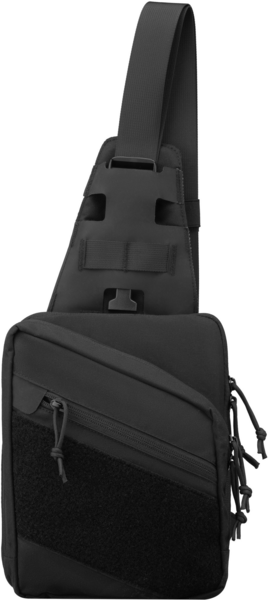 Сумка-слинг 2E-TSBQO4C-BK имеет 4 отделения разных размеров и назначения. Плечевой ремешок с регулировкой в диапазоне от 80 до 120 см, а также карабин фастекс для быстрого сброса сумки с плеча. Панель-накладка, в которой скрыт фастекс, изготовлена из прочного полиуретана, в структуру которого добавлены армированные нейлоновые нити, что существенно укрепляет общую конструкцию. Панель-накладка выполняет роль предохранителя от случайного открывания карабина и надежно соединяет ремешок с сумкой. Большое отделение со специальным ремешком позволяет одним быстрым движением добраться до оружия или просто в основное отделение. Внутренняя поверхность задней стенки выполнена из велкро, что позволяет прикрепить кобуру или модули крепления для магазинов или похожих по размерам аксессуаров.