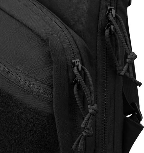 Второе фронтальное отделение имеет угол наклона открывания молнии, чем ускоряет доступ к этому отсеку. В середине этого отсека размещен карман-органайзер с мелкими карманами и держателями, который отлично подходит для набора выживания. На передней части сумки размещается дополнительный плоский кармашек, с дублирующим углом наклона молнии. На задней панели сумки расположен вертикальный карман на молнии.